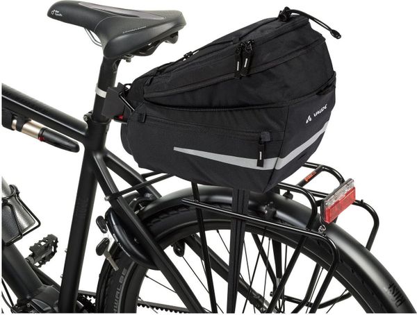 Replaces the backpack! In this large version of the seatpost bag you can transport up to 3 kg of luggage and relieve your back enormously. The storage space is even enough for the small overnight luggage.