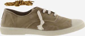 "Stylish canvas lace-up shoe made from recycled and organic cotton with a used effect and durable rubber sole."