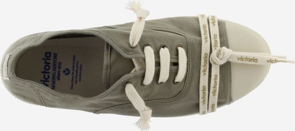 "The shoes come with two pairs of laces: one in natural color and one with the signature Victoria logo for added style. The vulcanized rubber sole is not only comfortable, but also equipped with a reinforced toe section for increased resistance and durability. These features make the shoe the ideal companion for everyday use."
