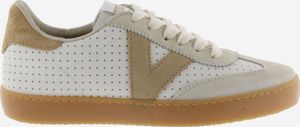 "Discover the stylish unisexsneaker made in Spain with attention to detail. The Berlu00edn Efecto Piel Picado & Serraje combines micro-perforated material in an elegant soft leather look with high-quality suedeelements. The Victoria-u201eVu201c on the side and the heel section create harmonious color accents that add a fashionable touch to any outfit. The transparent TR sole in caramel color not only gives the sneaker a unique look, but also ensures optimal comfort and support"