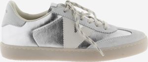 "Elegant women's sneaker from Spain with a metallic leather look and double laces for individual style."