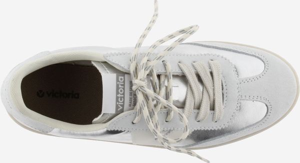 "Discover the stylish sneaker for women made in Spain by Victoria. The "Berlin Metal Women" combines metallic material in a leather look with elegant suede" overlays and adds a touch of glamor" to any outfit. The white "V" by Victoria on the side adds a contrasting accent that makes this sneaker a real eye-catcher."