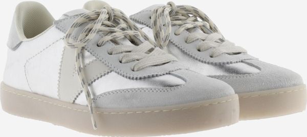 "Elegant women's sneaker with a metallic finish, suede details and double laces for individual style."