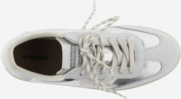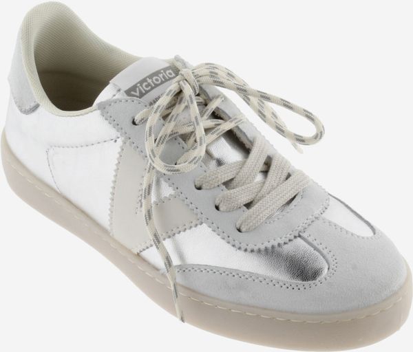 "Discover the stylish and versatile women's sneaker made in Spain by the renowned brand Victoria. The "Berlin Metal Women" impresses with its metallic leather-look material, which creates an elegant and modern look. The tonal suede overlays add an extra dimension and texture that make the sneaker look particularly sophisticated."