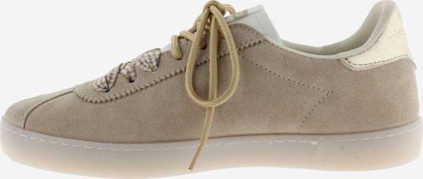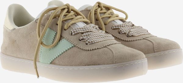 "Stylish women's sneaker made from Spanish suede with contrasting "V" and double laces."
