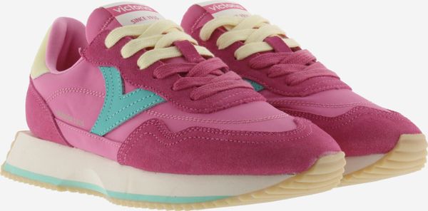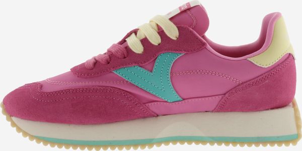 "Discover the colorful charm of the Cosmos Multicolor Nylon & Serraje sneakers for women by Victoria. These stylish trainers combine vibrant colors with a modern design and are made from high-quality nylon, which is complemented by tonal suede overlays. The striking "V" from Victoria on the side and the color-coordinated leather-look heel section give the shoes a unique and trendy look"