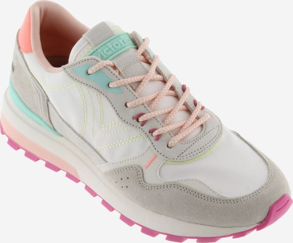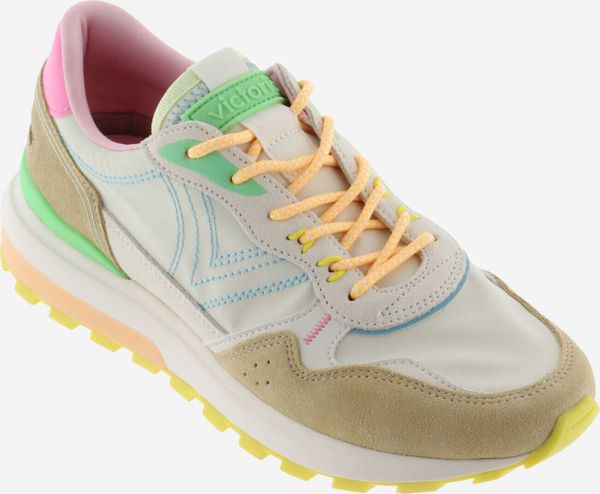 "The Luna Nylon & Serraje Multicolor women's sneakers from Victoria impressively combine vibrant colors and different textures to create a unique look. These sneakers are ideal for leisure and everyday wear and offer modern versatility that can be perfectly integrated into any outfit. Made from high-quality nylon, they feature overlapping suede and synthetic inserts that provide a stylish contrast. Special attention has been paid to the details, such as the elegant seams and the distinctive round laces."