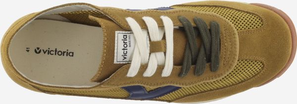 "A special highlight is the victoria-"V" on the side in a white leather look, which contrasts with the color-coordinated laces and gives the sneaker a unique look. The two-tone rubber sole is equipped with a jagged EVAprofile in caramel color, which is not only visually appealing, but also ensures excellent grip and stability"