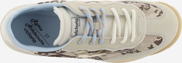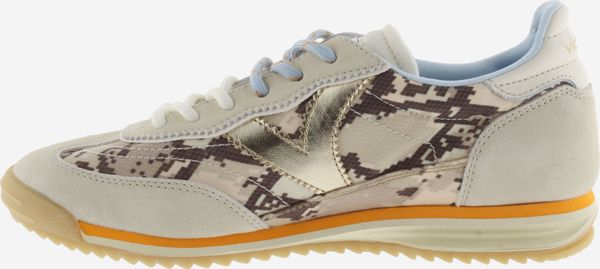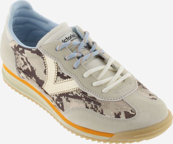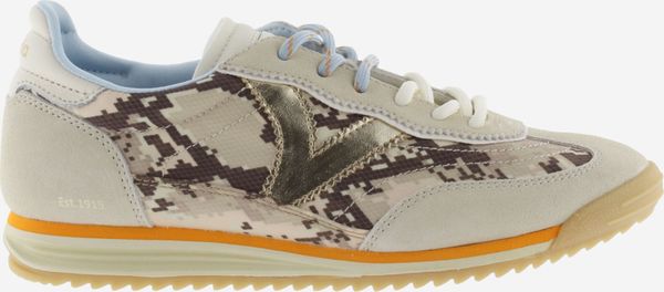 "Discover the Saturno Serpiente & Serraje sneaker from Victoria, which is a real eye-catcher with its striking Animalprint and tonal suedeoverlays. These stylish women's trainers combine elegance and comfort in a modern design. The metallic "V" from Victoria on the side and the heel section in a white leather look with the brand logo give the shoe a sophisticated touch"