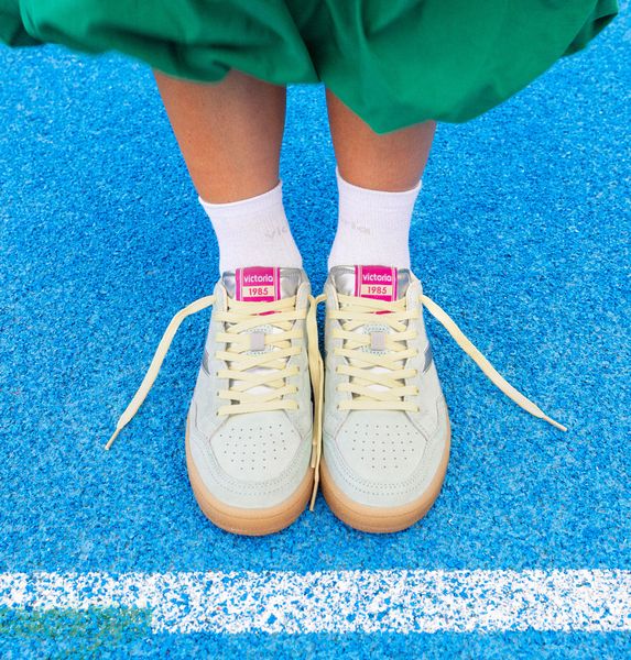 "The Smash - Suede Color sports shoes from Victoria combine style and comfort in a unique design that is suitable for both men and women. These unisex sports shoes are made of high-quality suede and feature stylish PU details that give the shoe a modern touch. The two-tone lace-up fastening, which comes in coordinated and fluorescent shades, not only ensures a secure fit, but also adds a fashionable accent."