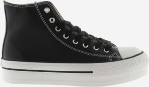 "Vegan high-top sneaker in a leather look with a 4 cm rubber sole, ideal for style-conscious and environmentally aware women."
