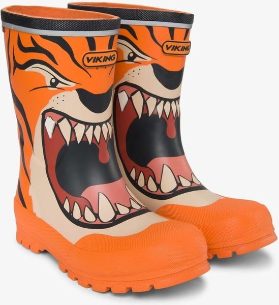 """The ""Jolly ""Print ""rain ""boot ""from ""Viking ""combines ""retro ""charm ""with ""modern ""functions ""and ""is ""the ""perfect ""companion ""for ""children ""on ""rainy ""days. ""With ""its ""cheerful ""prints ""and ""excellent ""workmanship, ""it ""is ""a ""real ""eye-catcher. ""These ""handmade ""rubber ""boots ""are ""made ""from ""a ""natural ""rubber ""blend ""that ""ensures ""flexibility ""and ""durability. ""The ""double-sealed ""seams ""and ""extra ""toe ""reinforcement ""provide ""additional ""protection ""and ""durability, ""while ""the ""deep ""lugs ""on ""the ""sole ""ensure ""maximum ""traction ""on ""wet ""surfaces."