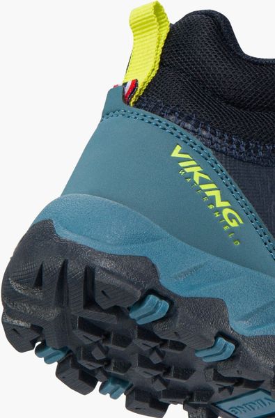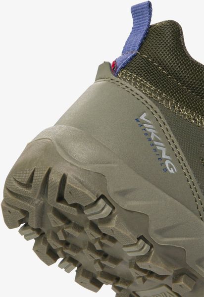 """The ""Track ""Mid ""WP ""2V ""from ""Viking ""is ""the ""ideal ""companion ""for ""adventurous ""children ""who ""love ""being ""outdoors. ""With ""its ""waterproof ""and ""PFAS-free ""Watershield ""membrane, ""this ""boot ""offers ""reliable ""protection ""from ""the ""wet ""so ""that ""little ""explorers ""stay ""dry ""in ""any ""weather. ""The ""extra ""grippy ""outsole ""provides ""excellent ""traction ""on ""all ""surfaces, ""while ""the ""additional ""toe ""reinforcement ""and ""protective ""dirt ""guard ""ensure ""durability ""and ""resistance."