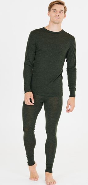 Comfortable base layer pants made from breathable, temperature-regulating and odor-inhibiting merino wool for versatile activities.