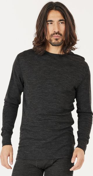 Breathable, odor-inhibiting merino wool base layer, ideal for running and outdoor activities.