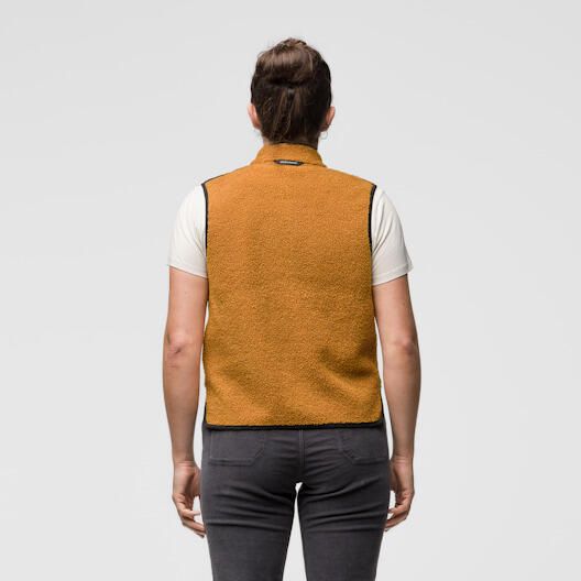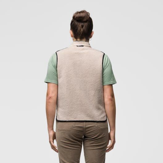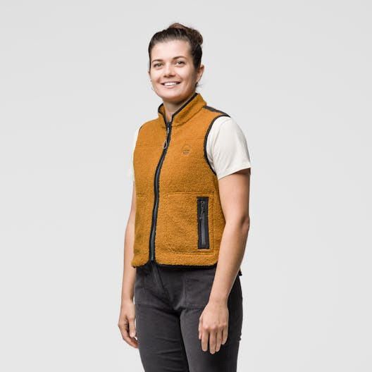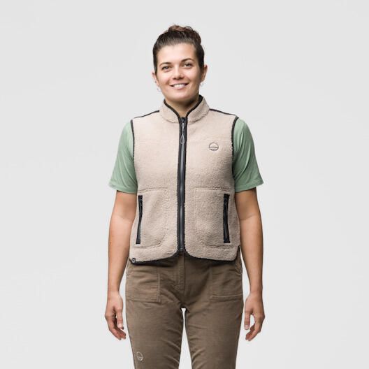 "Indispensable women's shearling vest for climbing and bouldering that keeps you warm and offers full freedom of movement."