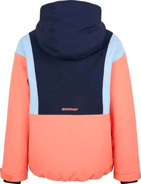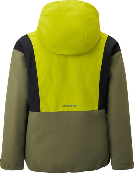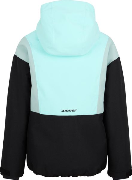 - "Hood in accordance with the DIN EN 14682 safety standard for children's clothing > Warm lining in the collar > Elasticated inner sleeve cuffs > Ski pass pocket > Ski pass pocket > ZIENER AQUASHIELDu00ae membrane (wateru00e4ule 10,000mm/breathabilityu00e4t 10.000g/mu00b2/24h) > Padding 120 g/mu00b2 > Taped seams > Contains recycled material > PFAS-free impregnation > Two slit pockets with zips > Inner pocket for ski goggles and sunglasses made of mesh material > Snow guard > Reflective elements"