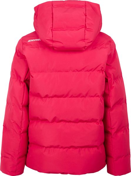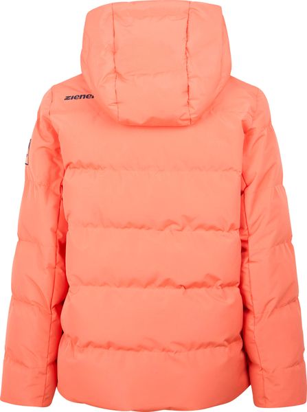 • "Hood in accordance with the DIN EN 14682 safety standard for children's clothing > Elasticated inner sleeve > Two slit pockets with zipper > Ski pass pocket > Snow guard > ZIENER AQUASHIELDu00ae membrane (wateru00e4ule 10,000mm/breathabilityu00e4t 10,000g/mu00b2/24h) > Recycled padding": "comfortempu00u00ae made by Freudenberg - Very good thermal insulation, optimal breathability, easy-care > The padding is made from recycled material > PFAS-free impregnation > Sewn-on logo patch on the upper arm > Reflective elements > Two slit pockets with zipper"
