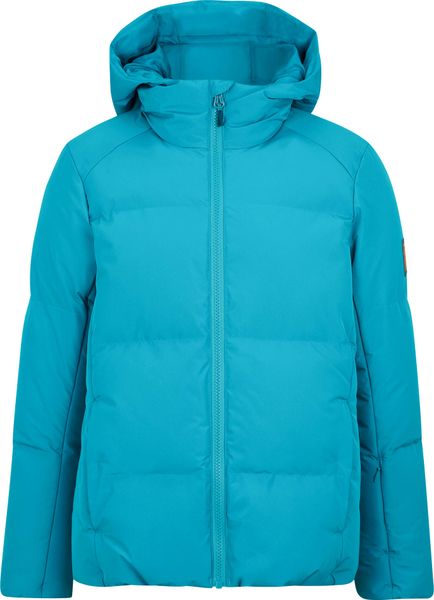 "Windproof and waterproof jacket for children with recycled padding, ideal for leisure and skiing."