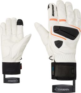 "The race-oriented ski gloves for men from Ziener, the GALF-Z AS PR Touch Glove, offer a perfect combination of functionalityu00e4t and comfort for demanding skiers. Equipped with first-class PrimaLoftu00e Gold insulation, these gloves keep your hands pleasantly warmu00even in extreme weather conditions. The windand waterproof ZIENER AQUASHIELDu00ae membrane ensures an optimal climate inside the glove, while the neoprene cuff with Velcro fastener ensures a secure fit under the jacketu00e4sleeve."