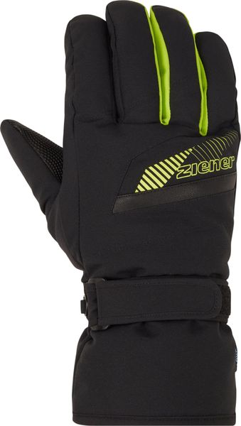 "The modern and sporty men's ski gloves from Ziener, model GORDANUS-Z ASu00ae, are the ideal choice for all skiers who value qualityu00e4t and functionalityu00e4t. Equipped with the breathable, waterproof and windproof AQUASHIELDu00e membrane, these gloves guarantee a warm and dry climate at all times, even in the most adverse weather conditions. The practical latch fastener ensures a secure fit on the wrist and prevents the ingress of snow and coldu00e4lte."