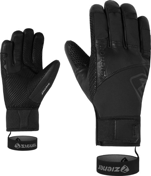 • The warming and robust ZIENER GOTAR AS® AW mountain sports gloves have a warming lining made of recycled POLARTEC® fleece on the backhand. Their robust, grippy palm as well as fingers made of renowned PITTARDS® goatskin ensure particularly high wearing comfort. Equipped with GRIP FIT technology, these gloves leave nothing to be desired in terms of grip. Their innovative cut reduces disturbing seams and makes them very stable. The wind-resistant, elastic POLARTEC® material ensures particularly high wearing comfort and makes the gloves soft and supple. Thanks to the padding made of lavalan® Alpenland wool, the glove is pleasantly warm while maintaining high breathability. The waterproof and windproof ZIENER AQUASHIELD® membrane keeps dry and warm in adverse weather conditions. The gloves feature a decorative, reflective ZIENER logo. Leash included. The product contains recycled material - for a resource-saving approach to the environment. Contains non-textile parts of animal origin.