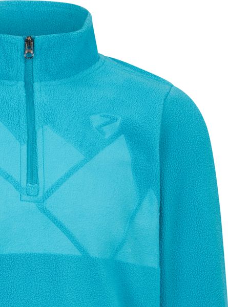 "Cozy mid-layer for children with warm fleece, ideal for skiing, with a stylish print and practical zip fastener."