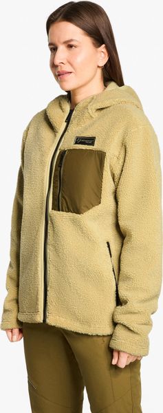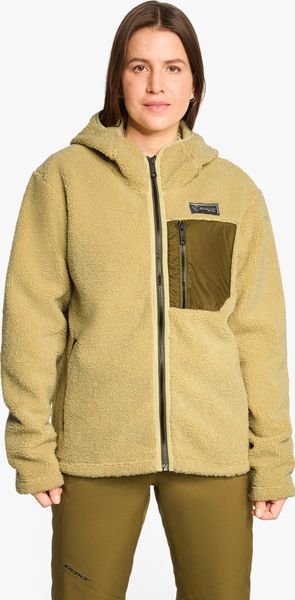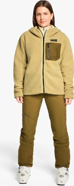 "Stylish women's midlayer with high-loft fleece, ideal for everyday wear and skiing, offers warmth and functionality."