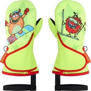 "Children's mittens with fun motifs, wind- and water-repellent, ideal for skiing and other winter activities."