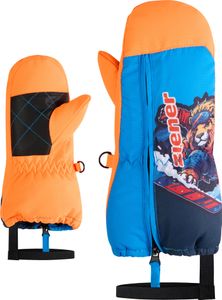 "The trendy ZIENER LEON-Z MINIS mini ski mittens are the ideal choice for little skiers who value comfort and functionality. Thanks to the extra-long zipper on the backhand, putting on and taking off the mittens is child's play, as the extra-wide opening offers optimum access. The gloves are specially designed for children and offer reliable protection in winter conditions thanks to their waterand wind-repellent properties"