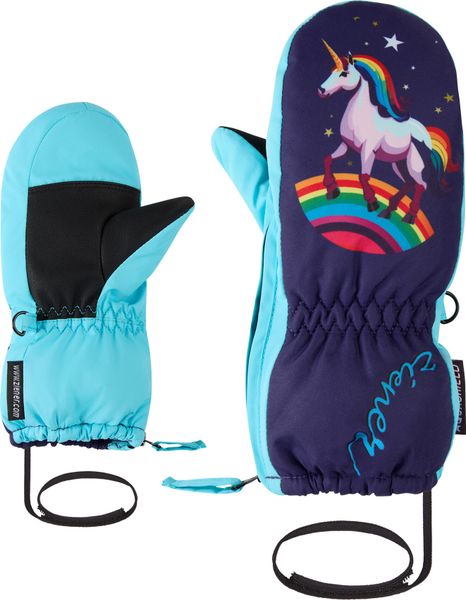 "The Leprint-z AS Glove Mini by Ziener are the ideal ski mittens for little adventurers who don't want to miss out on fun in the snow even in cold weather. Specially developed for children, these mittens feature a waterproof and windproof AQUASHIELDu00u00e membrane that keeps them warm and dry. Thanks to the fun motifs on the backhand, skiing becomes even more exciting and entertaining for the little ones"