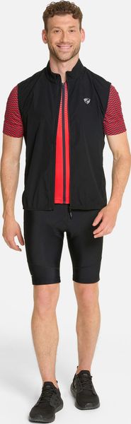 Wind and water-repellent cycling vest with reflective elements and 4-way stretch material for optimum freedom of movement.