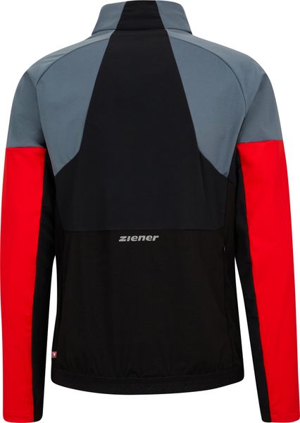 - "Stand-up collar > Two slit pockets with zipper > Seamless zipper pocket at the back > Partially elasticated cuffs & hem with elastic band > PFAS-free impregnation > ZIENER WINDSHIELDu00ae > Water-repellent > Padding 40g/mu00b2 > The padding is made from recycled material > Elastic softshell outer material > Reflective elements"