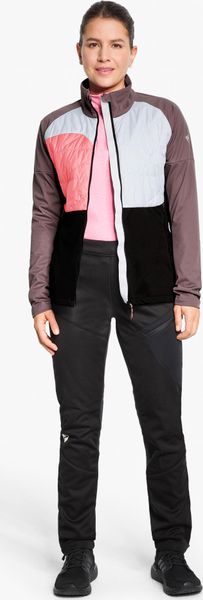 "The Norela-z Jacket Lady by Ziener is the perfect choice for women who don't want to compromise on cross-country skiing. This functional softshell hybrid jacket impresses with its close-fitting design and the windproof ZIENER WEATHERSHIELDu00u00e material, which reliably protects against wind and weather. Thanks to the PFAS-free impregnation, the jacket stays dry even in wet conditions, while the PrimaLoftu00u00ae padding made from recycled material ensures pleasant warmth. The integrated functional hood with high collar offers additional protection and comfort"