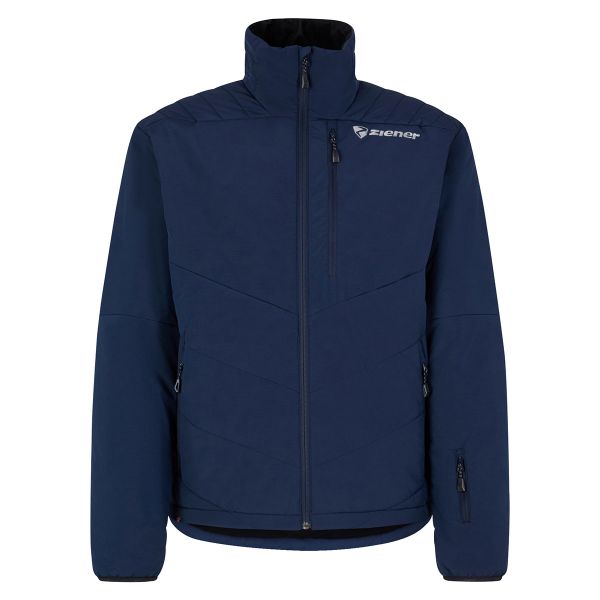 - "Chest pocket with zipper closure > Two slit pockets with zipper closure > Ski pass pocket > Width adjustment at the hem > Flies for subsequent printing on the front and back chest and upper arm"